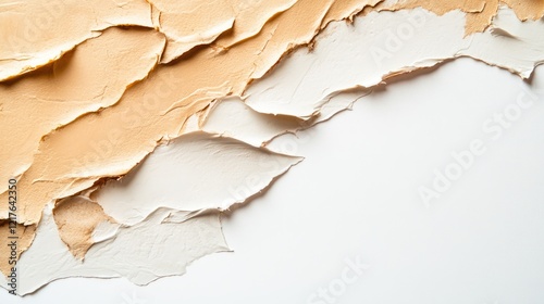 Textured layers of beige and white paint on a clean white background with Copy Space for design projects.
