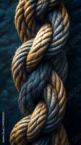 Textured Rope Close-Up Mobile Wallpaper – Brown and Blue Intertwined Ropes on Dark Background HD
