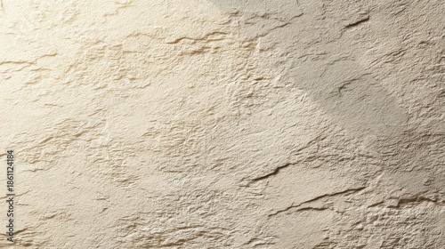 Textured surface of rough beige plaster with natural patterns and shadows, ideal for backgrounds, wallpapers, and artistic projects in interior design