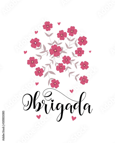 Thank you lettering card. Translation from portuguese - Thank you. Obrigado.