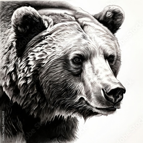 carnivore, forward, graphic, ink, mammal, predator, realistic, wildlife, zoo, bear, drawing, engraving, grizzly, head, male, art, face, illustration, isolated, muzzle, portrait, retro, vintage, white, wild