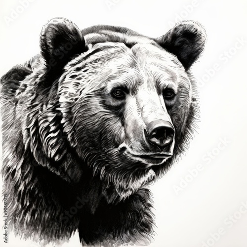 carnivore, forward, graphic, ink, mammal, predator, realistic, wildlife, zoo, bear, drawing, engraving, grizzly, head, male, art, face, illustration, isolated, muzzle, portrait, retro, vintage, white, wild