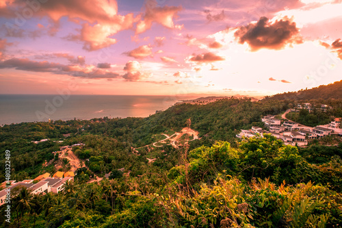 landscape, nature, mountain, sky, mountain, sunset, forest, tree, hill, cloud, view, panorama, grass, green, autumn, tree, travel, park, vale, sunrise, sun, countryside, summer, scenic, cloud