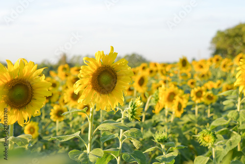 The beautiful sunflower field of the farmer.