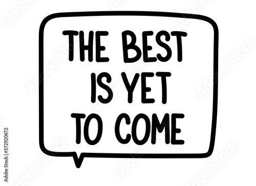 The best is yet to come inscription. Handwritten lettering illustration. Black vector text in speech bubble. Simple outline marker style. Imitation of conversation.