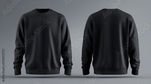 The black sweatshirt is a design for a new clothing line. The design is sleek and modern, with a clean and minimalist look. The color of the sweatshirt is a deep black, which gives it a sophisticated