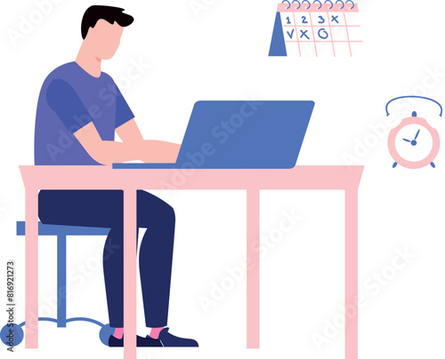 laptop, working, boy, table, online, management, manager, business, man, tied-up, concept, job, desk, planning, work, businessman, illustration, schedule, vector, design, productivity, male, success, person, background, task, character, multi, multitask, report, organisation, call, cartoon, deadline, company