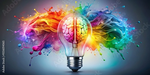 The Brain Inside the Lightbulb A Colorful Explosion of Creativity, lightbulb, creativity, brain