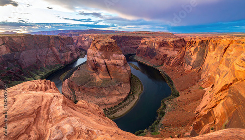 horseshoe, canyon, river, colorado, rock, bend, landscape, nature, sunset, formation, cliff, erosion, scenic, desert, red, sandstone, geology, view, panorama, travel, landmark, us, arizona, sky, water, natural, curve, terrain, environment, dramatic, beauty, west, wilderness, tour tourism, majestic, park, southwest, vale, sightseeing, iconic, adventure, cliff, earth, destination, light, wide, stone