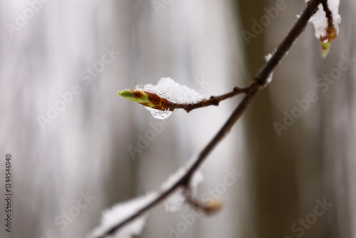 spring, winter, bud, snow, tree branch, tree, nature, green, brown, white, waterdrop, melting, contrast, beginning, awakening, season, detail, background, wintery, natural, glacé, fresh, tone, serene, soft, beauty, space, scenery, closeup, plant, macro, texture, colours, tenderness, cold, flower, december, closeup, europa, birch, blurred, forest, hazelnut, day, country, hazel