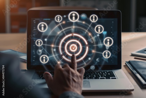 hr, magnifying glass, business, buttons, hand, touch, finger, technology, computer, network, concept, social, future, touch screen, merchant, digital, screen, interface, icon