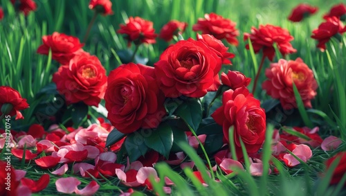 The camellia flowers in red are blooming.