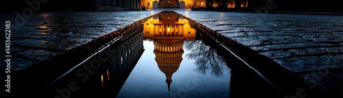 The Capitol reflecting in a nearby fountain or pool of water, creating a symmetrical image - destination cityscape detail
