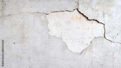 The concept of minimal concrete finishes. Cracked concrete wall with peeling paint and texture details.