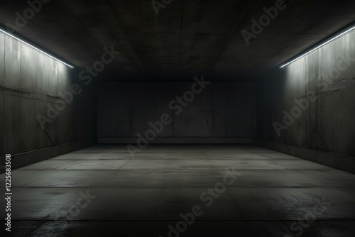 The concrete room serves as a bomb shelter, with stark walls and minimal lighting, an atmosphere of privacy and security. The design demonstrates the essence of protection in uncertain times.