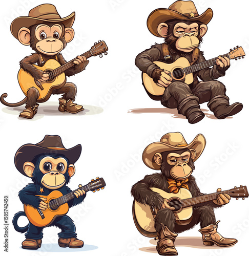 The cowboy Monkey is playing a guitar and wearing cap vector style on white background