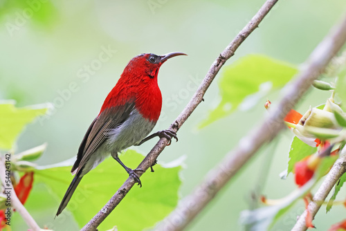 tropical, wild, animal, avian, bird, nature, red, asia, forest, garden, bill, fast, fly, freedom, wildlife, crimson, male, beak, flower, background, beautiful, billed, environment, fresh, park, tree, colourful, colours, conservation, curve, flight, alert, creature, long, olive, sucking, beauty, black, evergreen, nectar, tree branch, bloom, blossom, tree branch, siam, siam, many-coloured, pecker