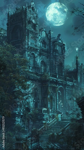 abandoned, luxury home, eerie, dark, forest, moonlight, creepy, haunted, overgrown, foliage, shadow, atmospheric, dilapidated, night, gothic, architecture, mystery, ominous, ruin, stone, crumbling, stair, tree, mist, deserted, solitude, enchanting, decay, fantasy, surreal, ghostly, old, desolate, wilderness, twilight, forgotten, landscape, chilling, isolation, vintage, supernatural, unkempt, sinister, nocturnal, mythical, relic, enchantment