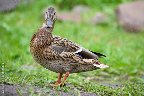duck, grass, nature, wildlife, feather, wild, animal, bird, green, standing, portrait, beak, wing, head, anas platyrhynchos, brown, alone, eye, horizontal, outside, rest, walk, calm, single, adult, close, cute, beautiful, europa, water bird, mallard duck, water bird, chest, colourful, fluffy, gaze, posing, wild duck, selective focus