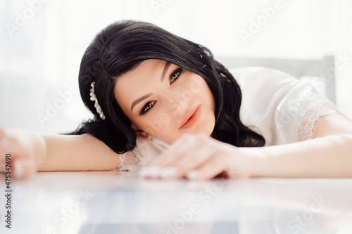 face, beautiful, brunette, bride, long, hair, white, hairpin, make-up, styling, celebration, morning, happy, honeymooners, beauty, portrait, wedding, woman, fashion, model, style, bridal, glamour, coiffure, lady, luxury, pretty, marriage, sensuality, stylish, sexy, delicate, attractive, cosmetic, care, professional