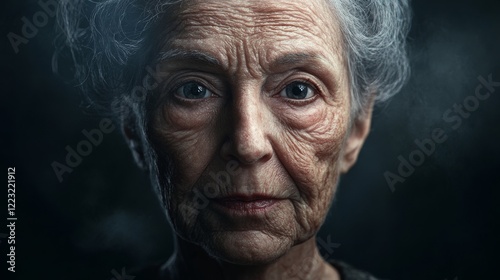 elderly, woman, face, wrinkled, skin, dark, background, aged, detail, studio, photo, expression, mature, line, feature, closeup, texture, age, wisdom, character, emotion, portrait, vulnerability, deep, eye, solemn, strength, natural, wrinkle, realism, light, shadow, depth, serene, calm, old, sorrowful, life events, beauty, authenticity, intensity, contour, life, dignity, grey, ageing, solitude, senior, person