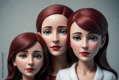 The figure of a mother with her daughters made of clay and felt