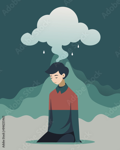 The fog lifts for a brief moment offering a glimpse of clarity before descending once again leaving the person lost in their own mental fog.. Vector illustration