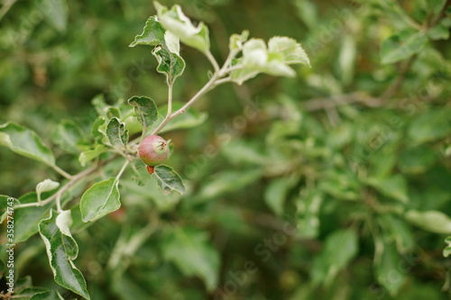 The germ of an Apple on a branch on a background of blurred Bush
