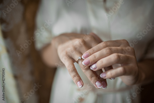 The girl's hand. Wedding ring, hands, rings, decor.
