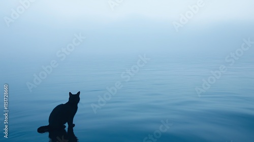 cat, water, fog, silhouette, calm, morning, dawn, nature, calmness, edge, peaceful, landscape, serene, quiet, sitting, mist, dark, animal, lake, surrounding, beauty, stillness, wildlife, contemplation, solitude, environment, felino, scenery, coastline, horizon, emotional, shadow, minimalism, artistry, atmospheric, coastal, wary, depth