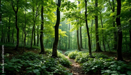 The green lung created by dense forest trees plays a vital role in purifying the air by absorbing carbon dioxide and releasing oxygen, thereby promoting a healthy environment.