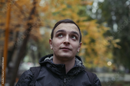 the guy on the background of the gloomy Russian autumn