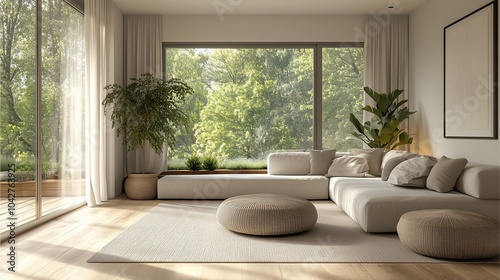 The image could be named Contemporary Modern Living Room Design It showcases a luxurious and elegant living space with sleek furniture, natural light, and a comfortable, open layout
