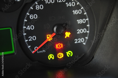 the instrument panel in the car, the speed dial on the dashboard
