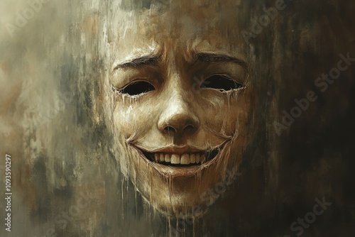 depression, mask, melting, grieved, exhaustion, sorrowful, symbolic, metaphor, hidden, emotion, despair, struggle, loneliness, blurred, contrast, dramatic, lighting, shadow, modelling, chiaroscuro, illustration, print, landscape, background, desktop, wallpaper