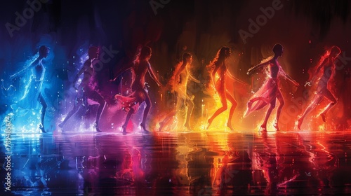 The Musical Number, a dazzling Broadway stage, performers burst into song and dance, Generated AI.
