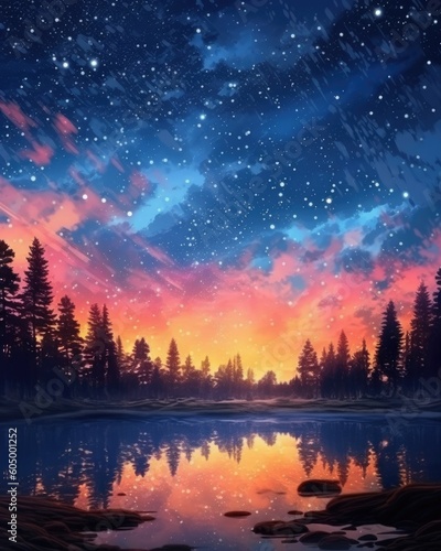 The night sky with beautiful stars is in the background. (Generative AI)