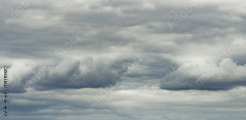 The panorama of overcast texture with clouds. Copy space.A lot of clouds in dramatic filter.