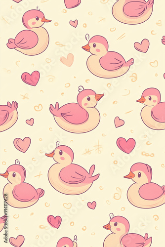 The photo illustration of seamless pattern ducks on the colorful background