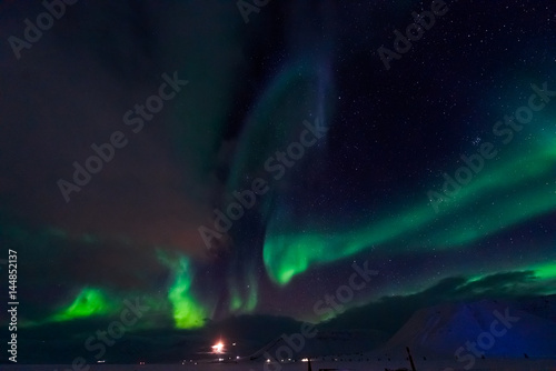 The polar Northern lights in the mountains of Svalbard, Longyearbyen, Spitsbergen, Norway wallpaper