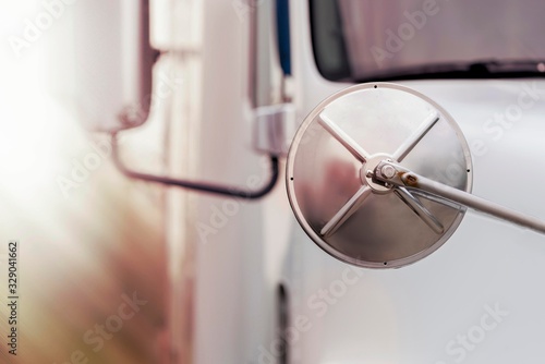 the rear view mirror of the truck close-up. trucking industry