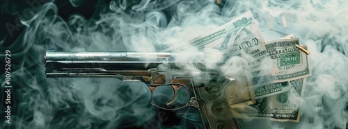 The revolver was covered in smoke and dollar bills