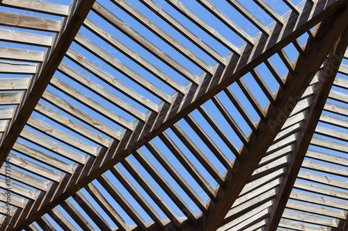 sky, architecture, material, abstract, blue, grid, graphic, striped, in, roof, trellis, row, horizontal, plank, frame, carpenter's shop, closeup, colours, background, decoration, sunshade, light, art, architectural, colours, building, detail, nature, lattice, brown, pergola, lath, ceiling, summer, building