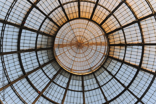 The roof of the glass dome of the pavilion with metal frames in the gallery in Milan, Italy, Europe