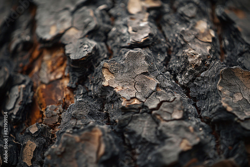 The rough texture of a trees bark, close-up on the scars and marks that tell stories of survival and resilience