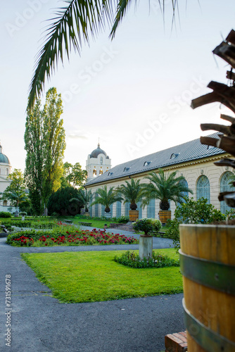 The royal Wilanow Palace in Warsaw, Poland. View of a gardens and facade.