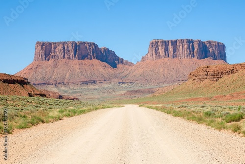 monument valley, desert landscape, road, southwest, arizona, utah, american west, red rock, sandstone, geology, scenic, travel, tour tourism, outdoors, us, us, blue skies, clear sky, sunny day, arid, dry climate, erosion, formation, nature, adventure, exploration, destination, horizon, panorama, huge, expansive, majestic, remote, isolated, rural, dirt road, gravel road, canyon, vale, geography, western, landmark, desert plant, summer