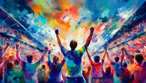 The scene of people excited cheering for their favorite sports team to win.