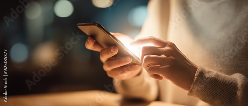 smartphone, technology, night, hand, light, communication, modern, social, lifestyle, interaction, closeup, screen, glowing, fingertip, user, browsing, cyberspace, casual attire, leisure, bright, warm, cosy, engagement, mobile, connection, user-friendly, contraption, digital, personal, sharpened, table, indoor, person, device, touch, keyboard, evening, exploring, information, panoramic