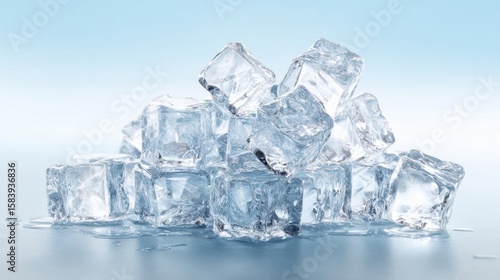 The sparkling ice cubes melting on a cool blue background